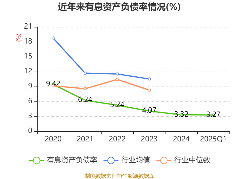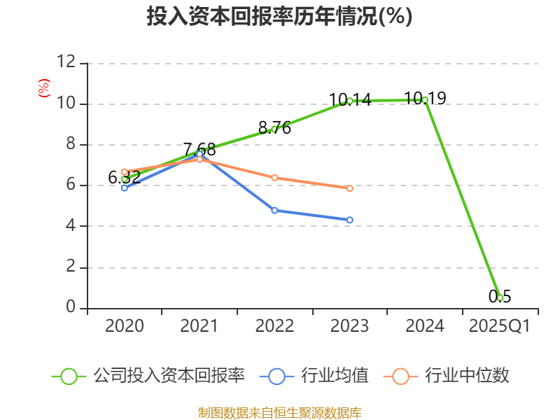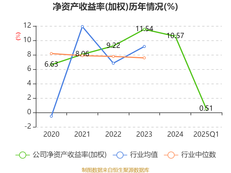 盈利能力方面, 2025年一季度公司加权平均净资产收益率为0.51%,同比下降2.41个百分点。公司2025年第一季度投入资本回报率为0.5%,较上年同期下降2.3个百分点。