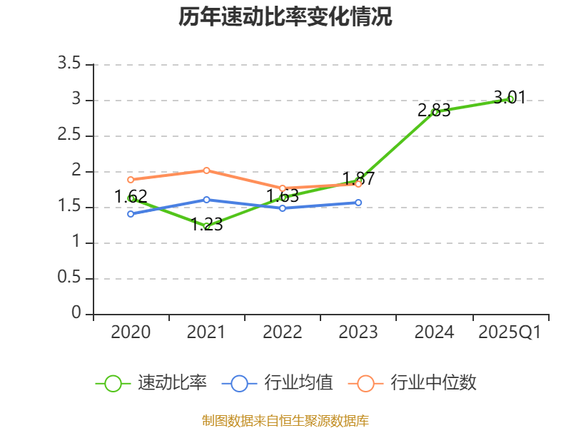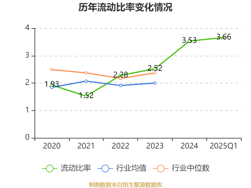 2025年第一季度,公司流动比率为3.66,速动比率为3.01。