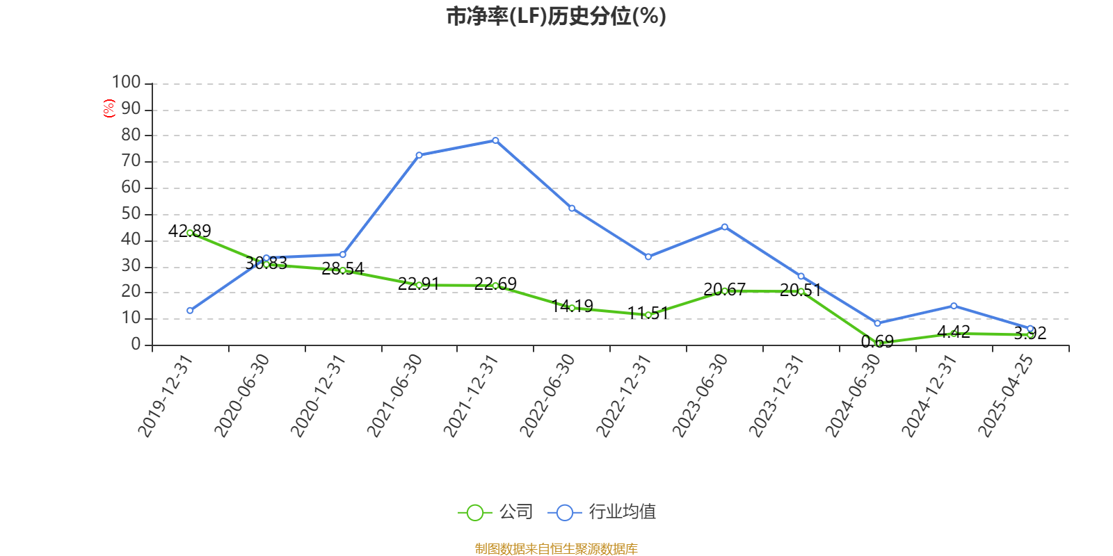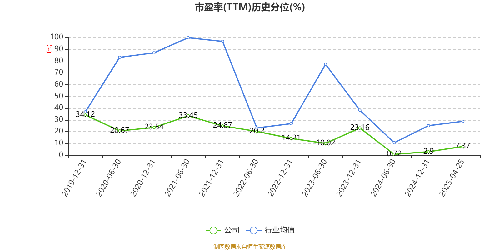市盈率、市净率为负时长富资本,不显示当期分位数,会导致折线图中断。