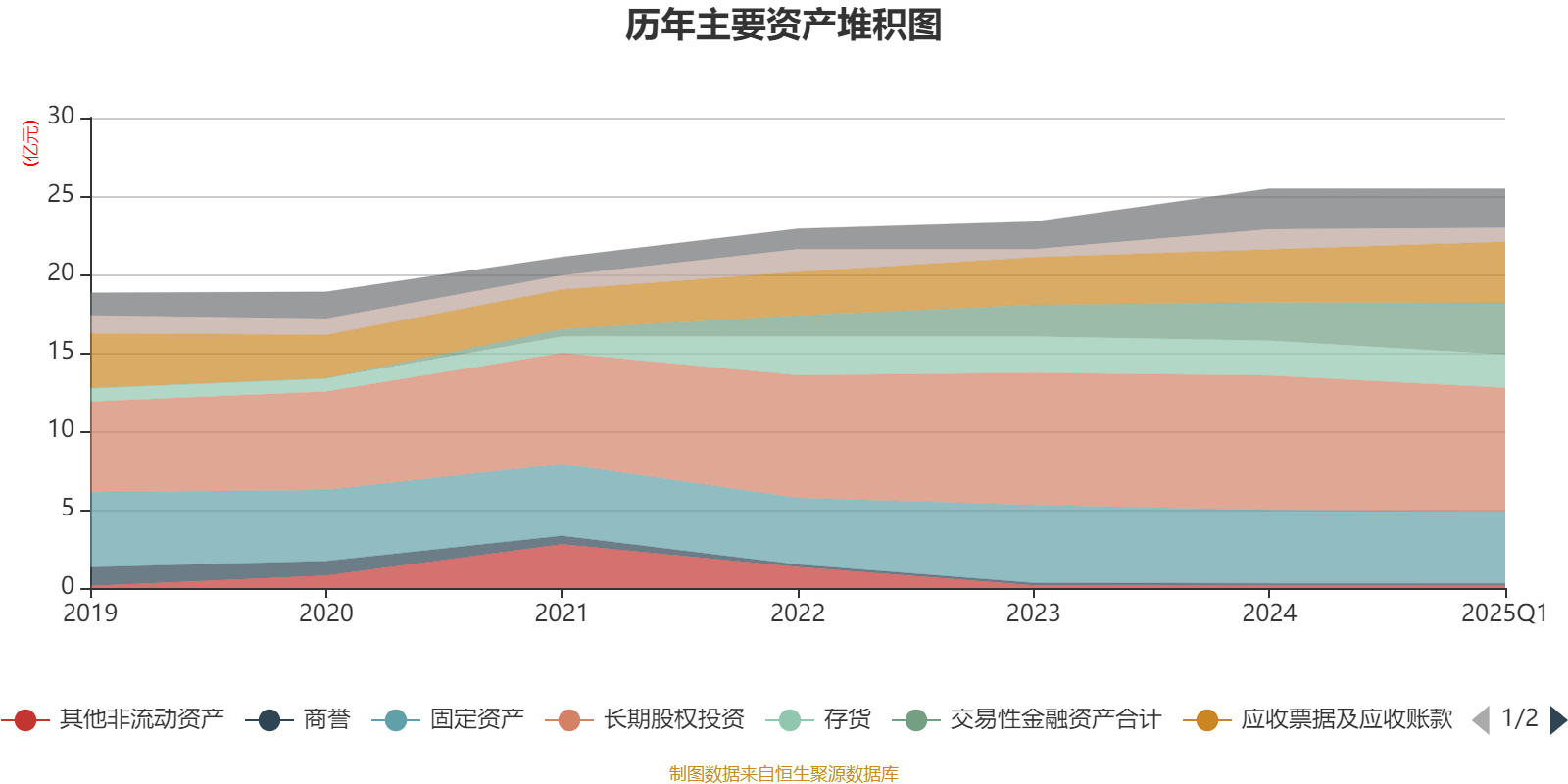 资产重大变化方面,截至2025年一季度末,公司交易性金融资产合计较上年末增加35.04%,占公司总资产比重上升3.36个百分点;长期股权投资较上年末减少7.95%,占公司总资产比重下降2.66个百分点;应收票据及应收账款较上年末增加14.98%,占公司总资产比重上升2个百分点;货币资金较上年末减少31.04%,占公司总资产比重下降1.56个百分点。