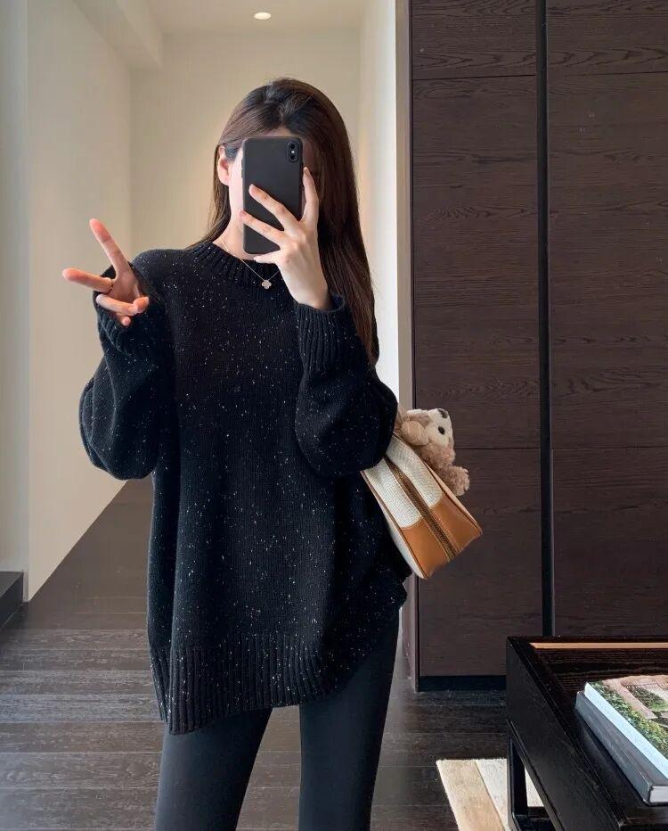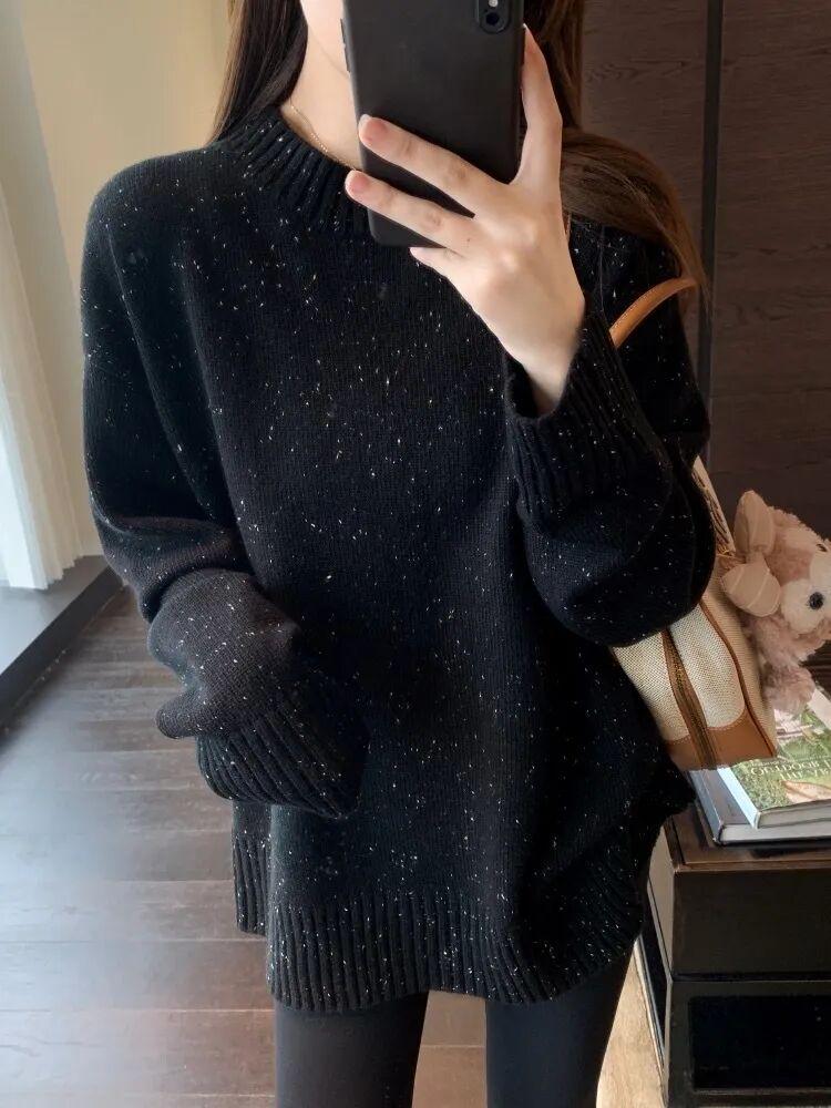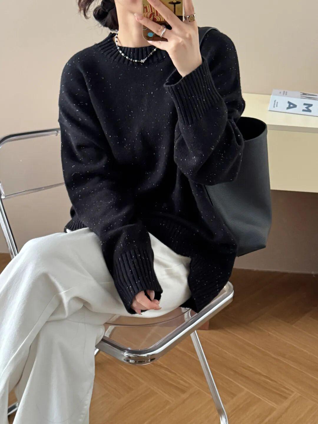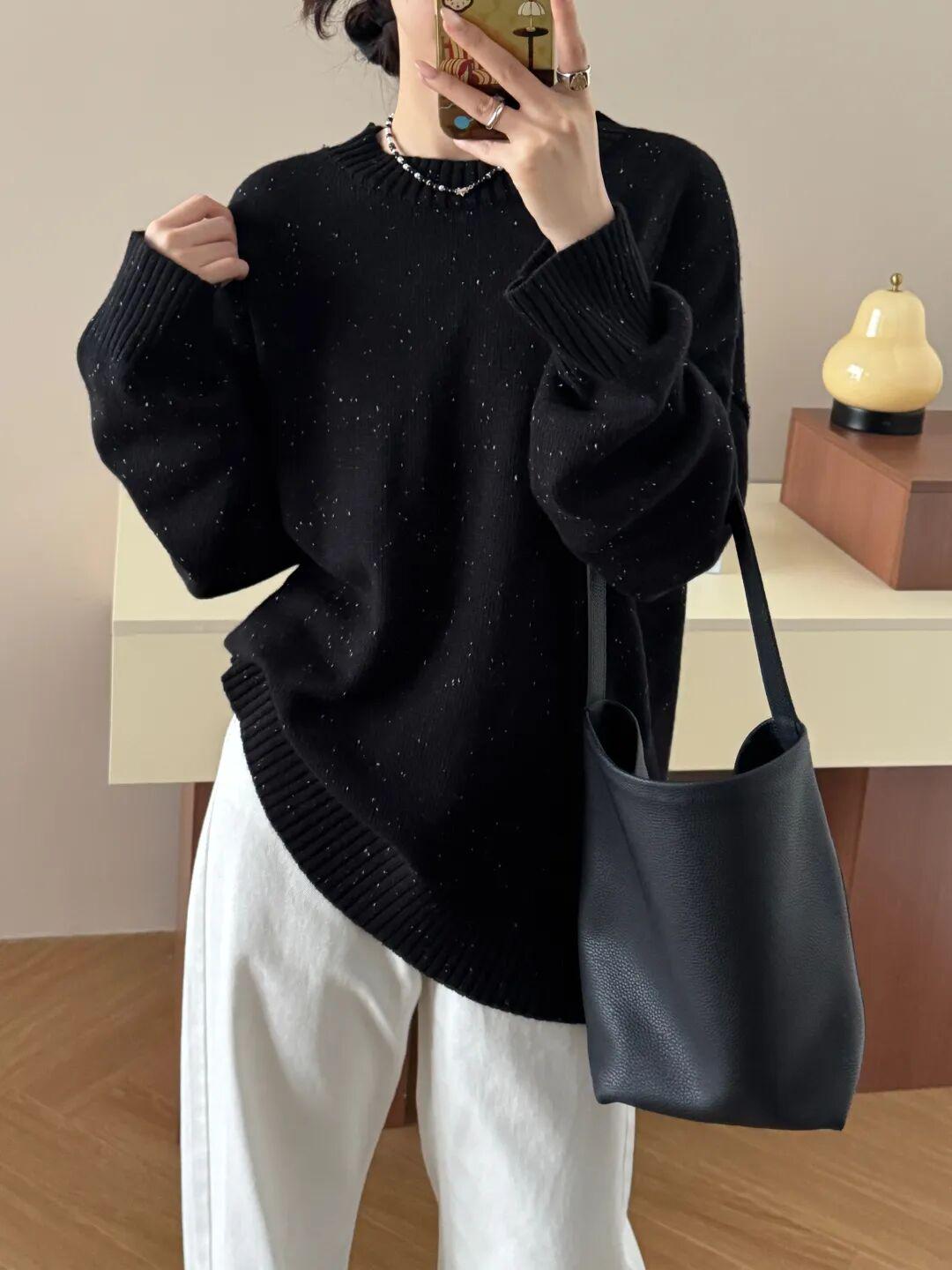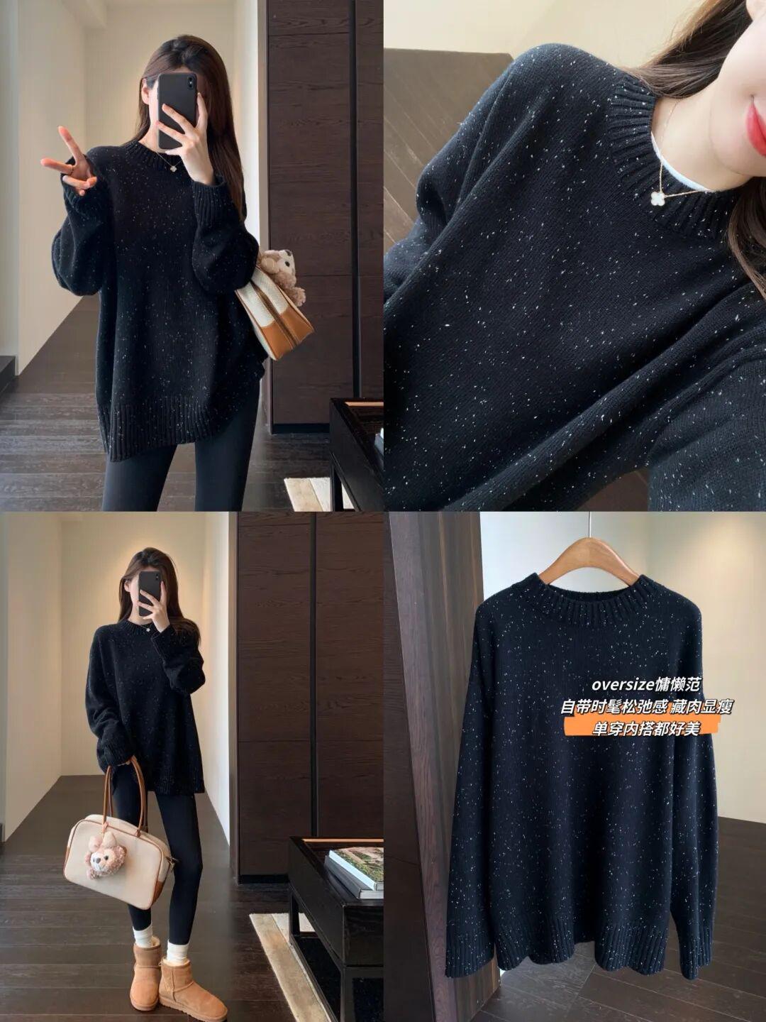 高克重羊毛面料自带暖糯质感, 贴肤穿细腻不扎,还能牢牢锁住温度, 衣身的不规则满天星纹理, 不像普通毛衣那样单调,走动时灵动闪着微光, 微肉身材能藏住赘肉,娇小身材能穿出慵懒随性感
