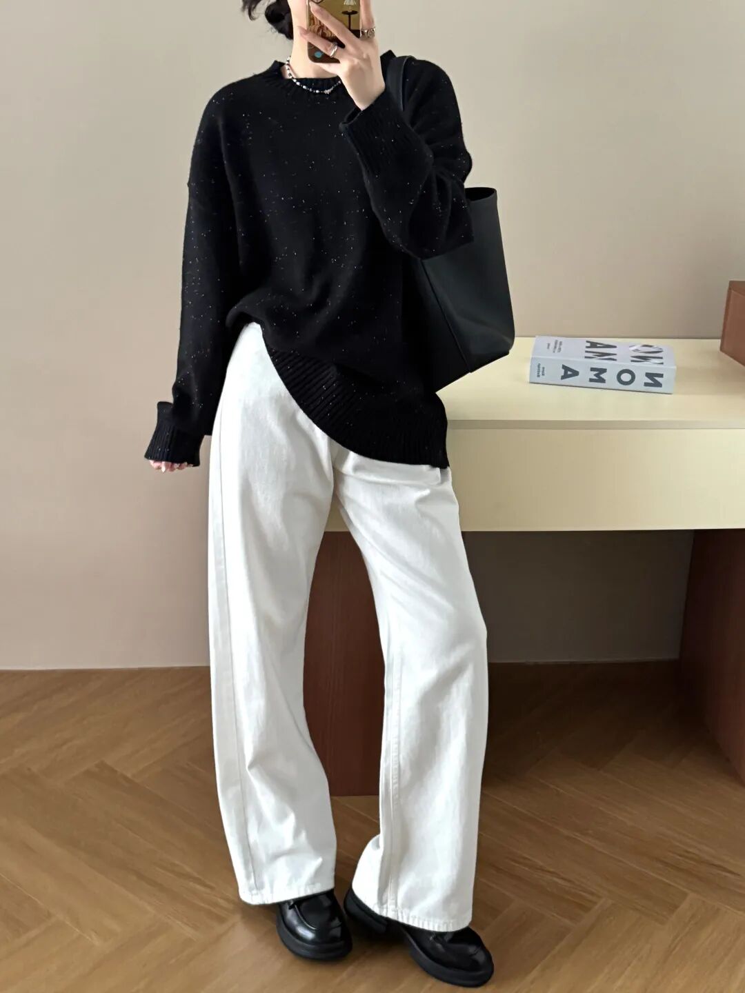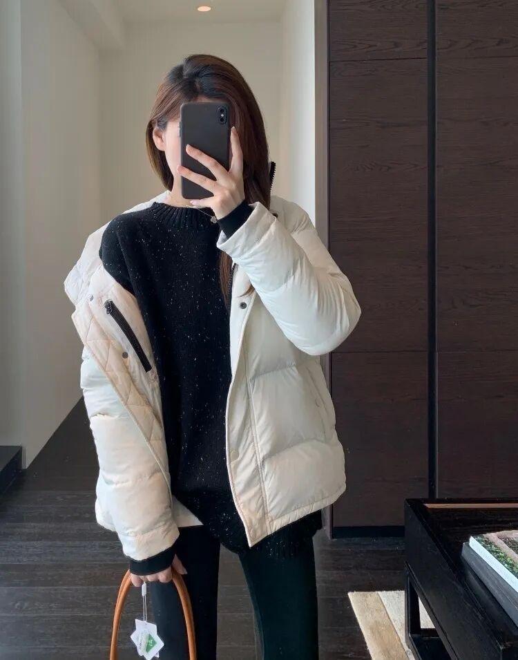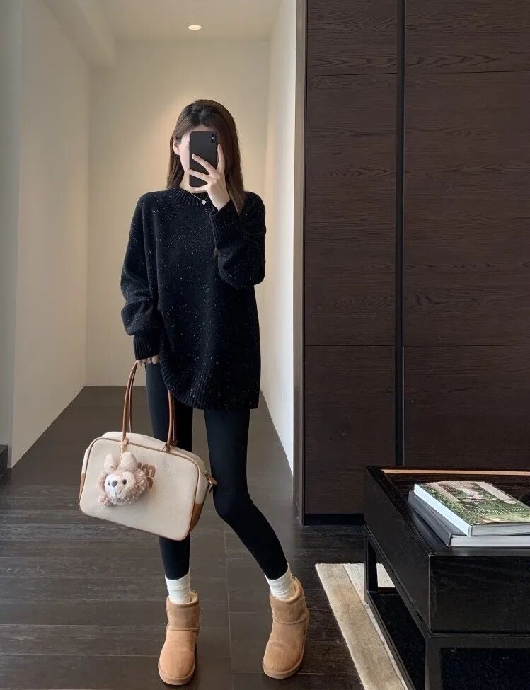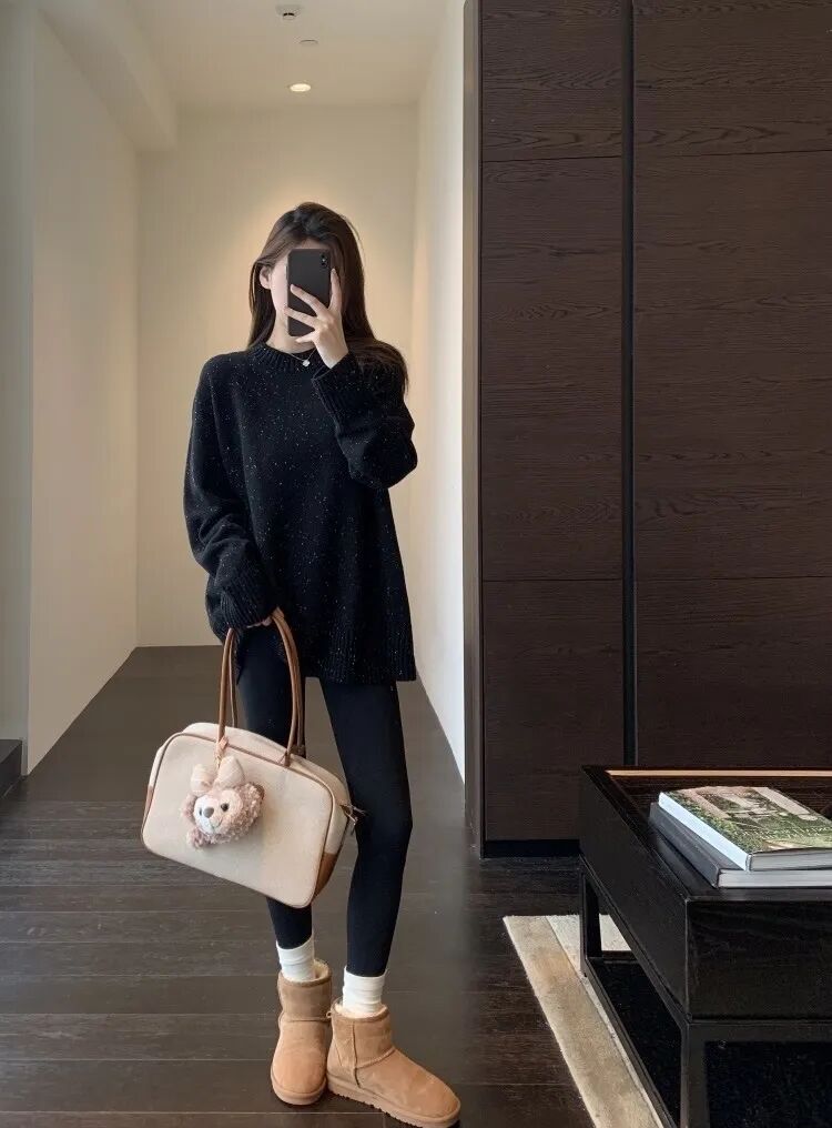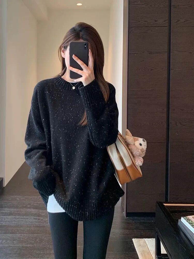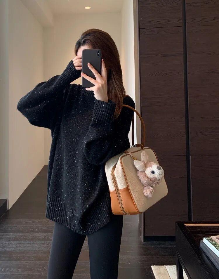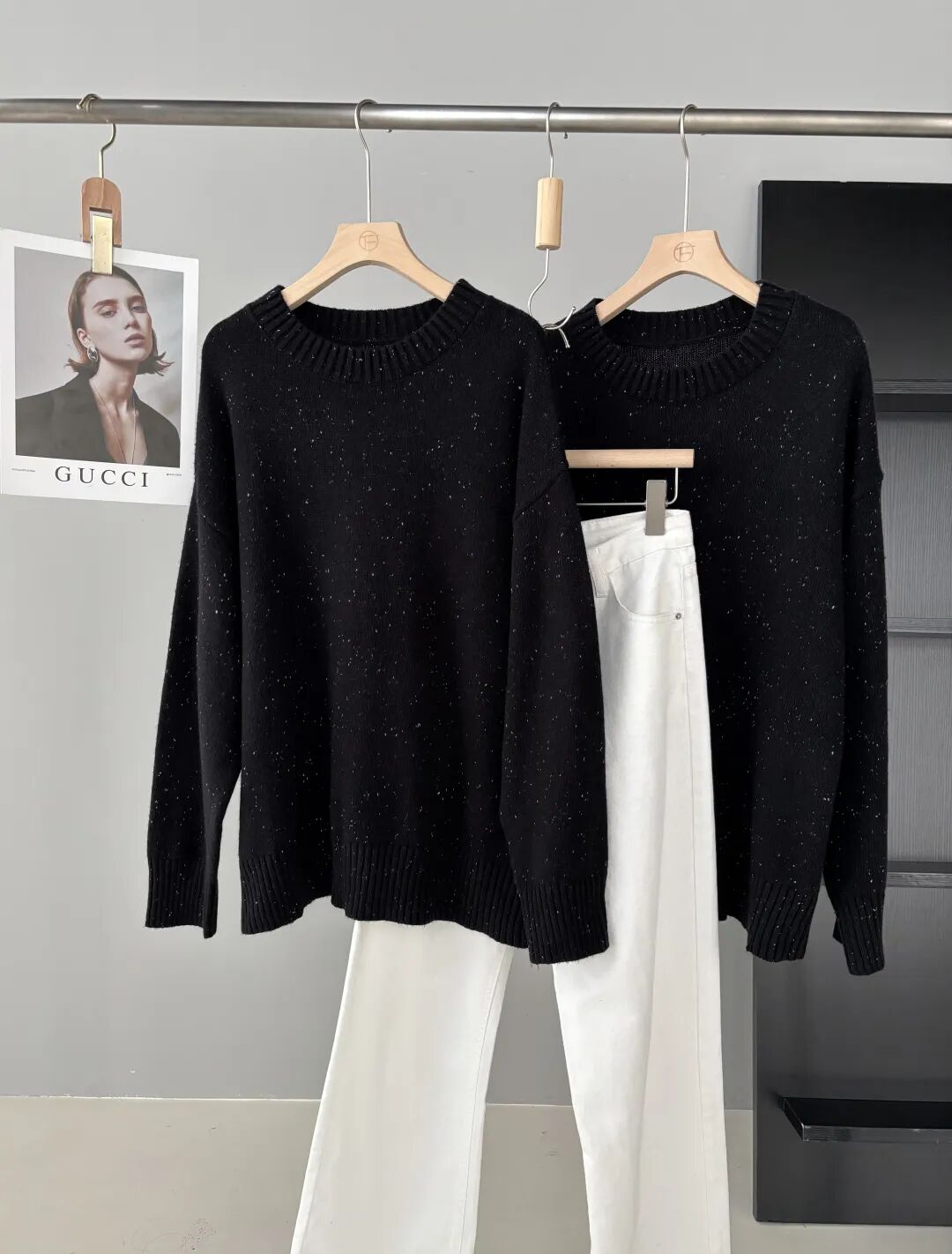高克重羊毛面料自带暖糯质感, 贴肤穿细腻不扎,还能牢牢锁住温度, 衣身的不规则满天星纹理, 不像普通毛衣那样单调,走动时灵动闪着微光, 微肉身材能藏住赘肉,娇小身材能穿出慵懒随性感