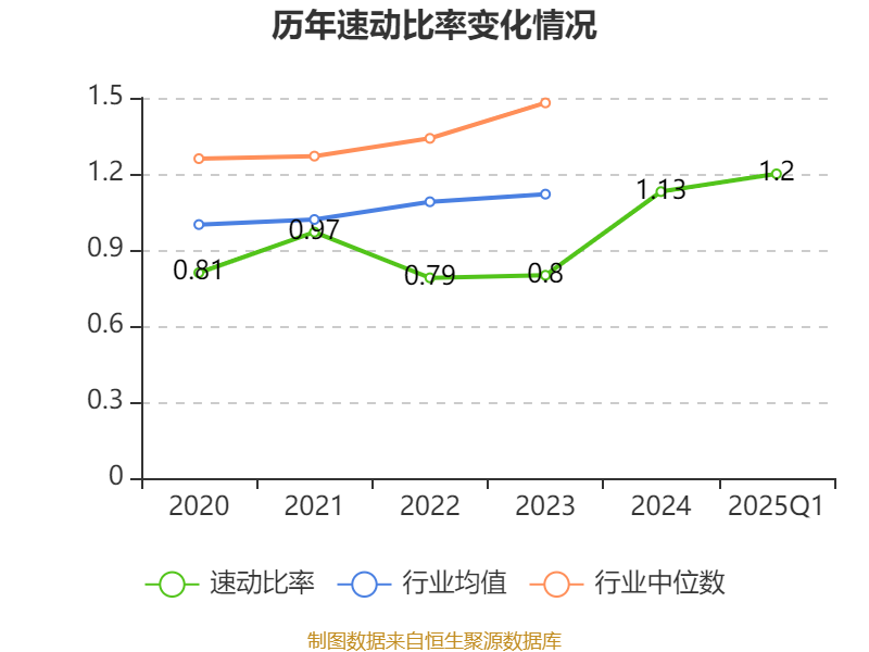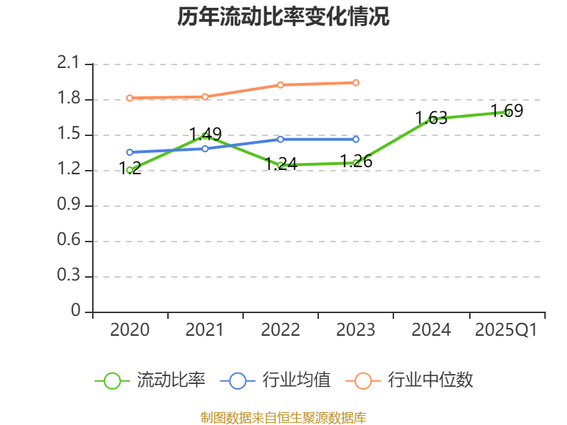 2025年第一季度,公司流动比率为1.69,速动比率为1.2。