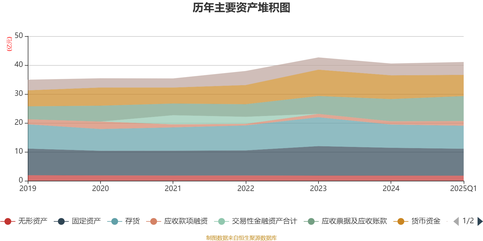 资产重大变化方面,截至2025年一季度末,公司货币资金较上年末减少10.95%,占公司总资产比重下降2.46个百分点;应收票据及应收账款较上年末增加12.67%,占公司总资产比重上升2.12个百分点;应收款项融资较上年末增加41.93%,占公司总资产比重上升1.13个百分点;预付款项较上年末增加55.5%,占公司总资产比重上升1.04个百分点。