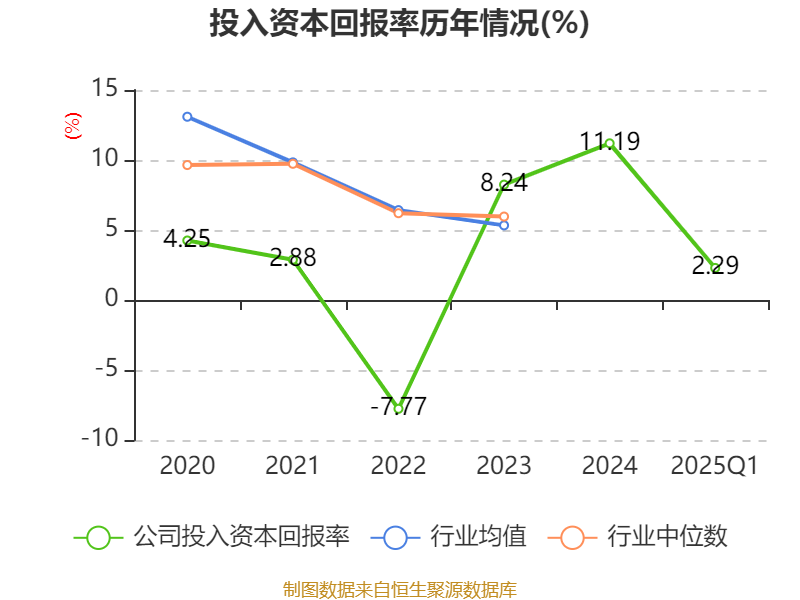 盈利能力方面, 2025年一季度公司加权平均净资产收益率为2.26%,同比上升1.23个百分点。公司2025年第一季度投入资本回报率为2.29%,较上年同期上升1.17个百分点。