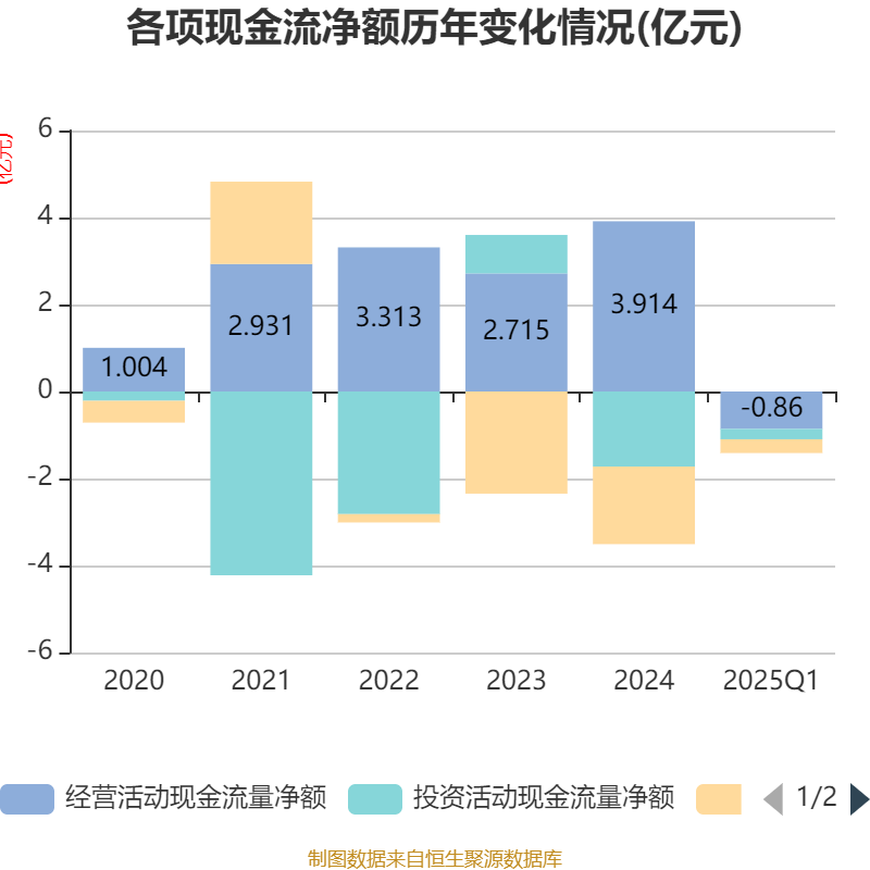 截至2025年一季度末,公司经营活动现金流净额为-8600.64万元股票推手,同比增加1205.38万元;筹资活动现金流净额-3156.5万元,同比减少1493.9万元;投资活动现金流净额-2390.07万元,上年同期为-1070.67万元。