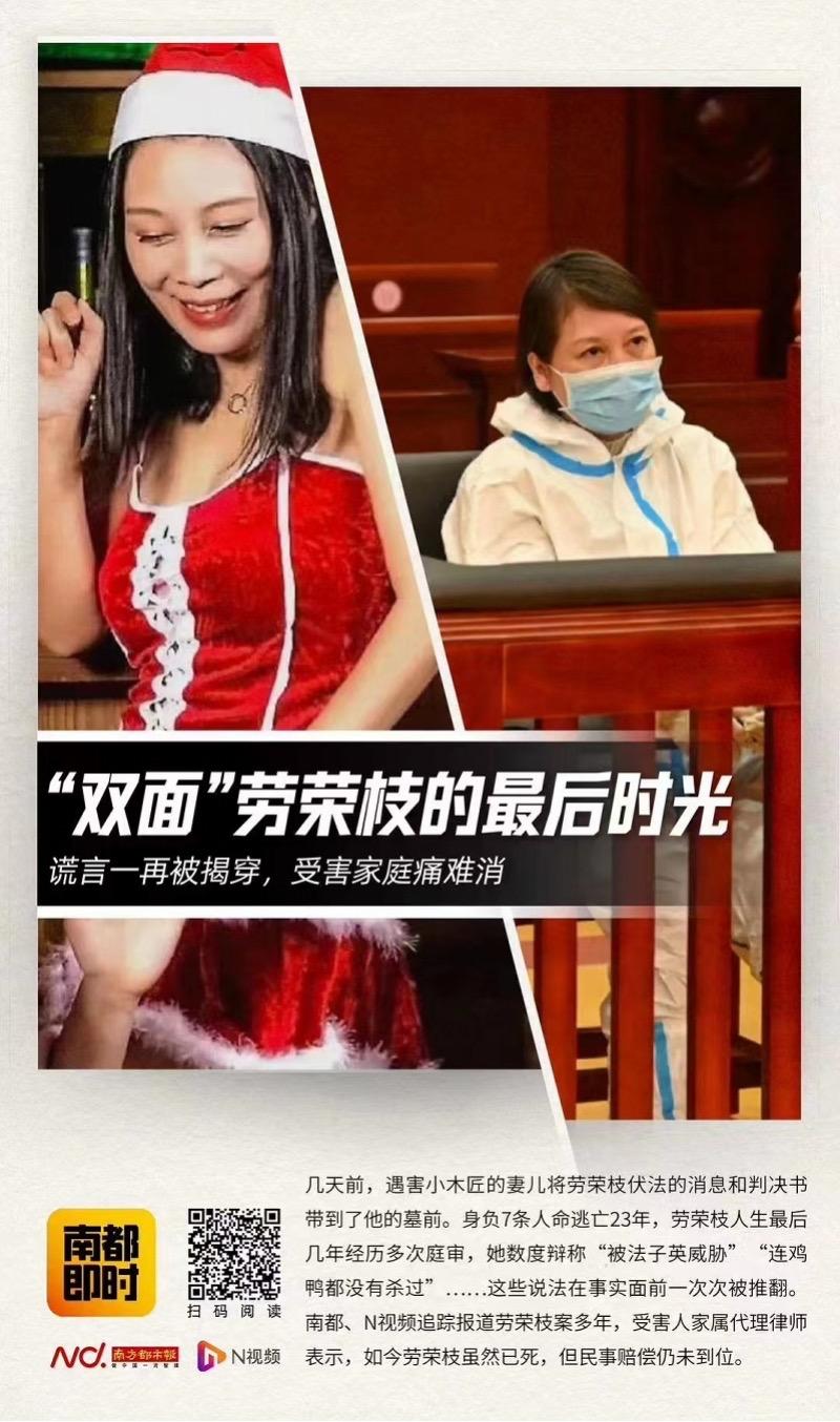 南都此前报道,2023年12月18日,劳荣枝被南昌市中级人民法院执行死刑。2024年2月23日,最高法在中国裁判文书网公布了劳荣枝故意杀人、绑架、抢劫罪死刑复核刑事裁定书。