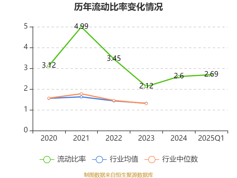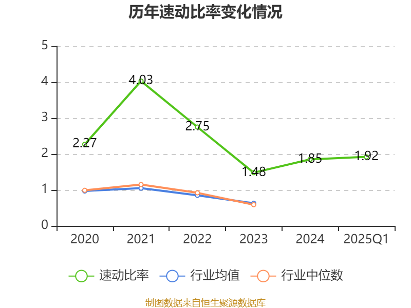 2025年第一季度,公司流动比率为2.69,速动比率为1.92。