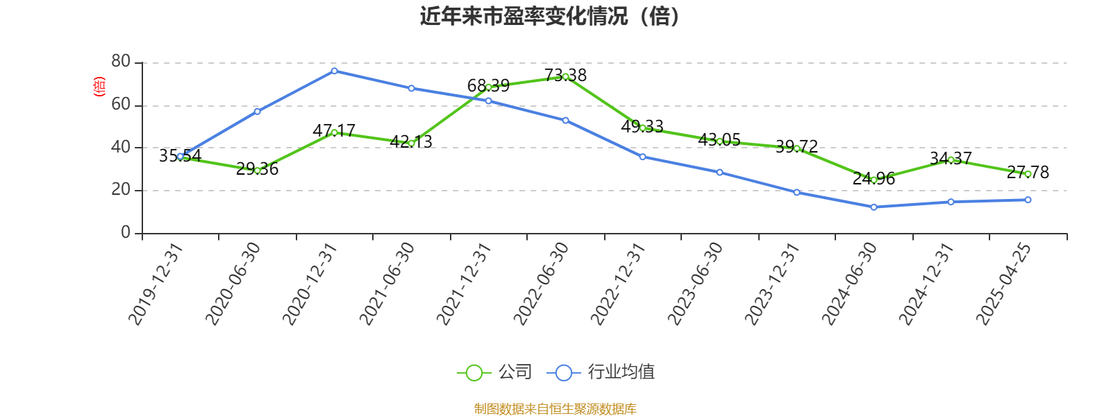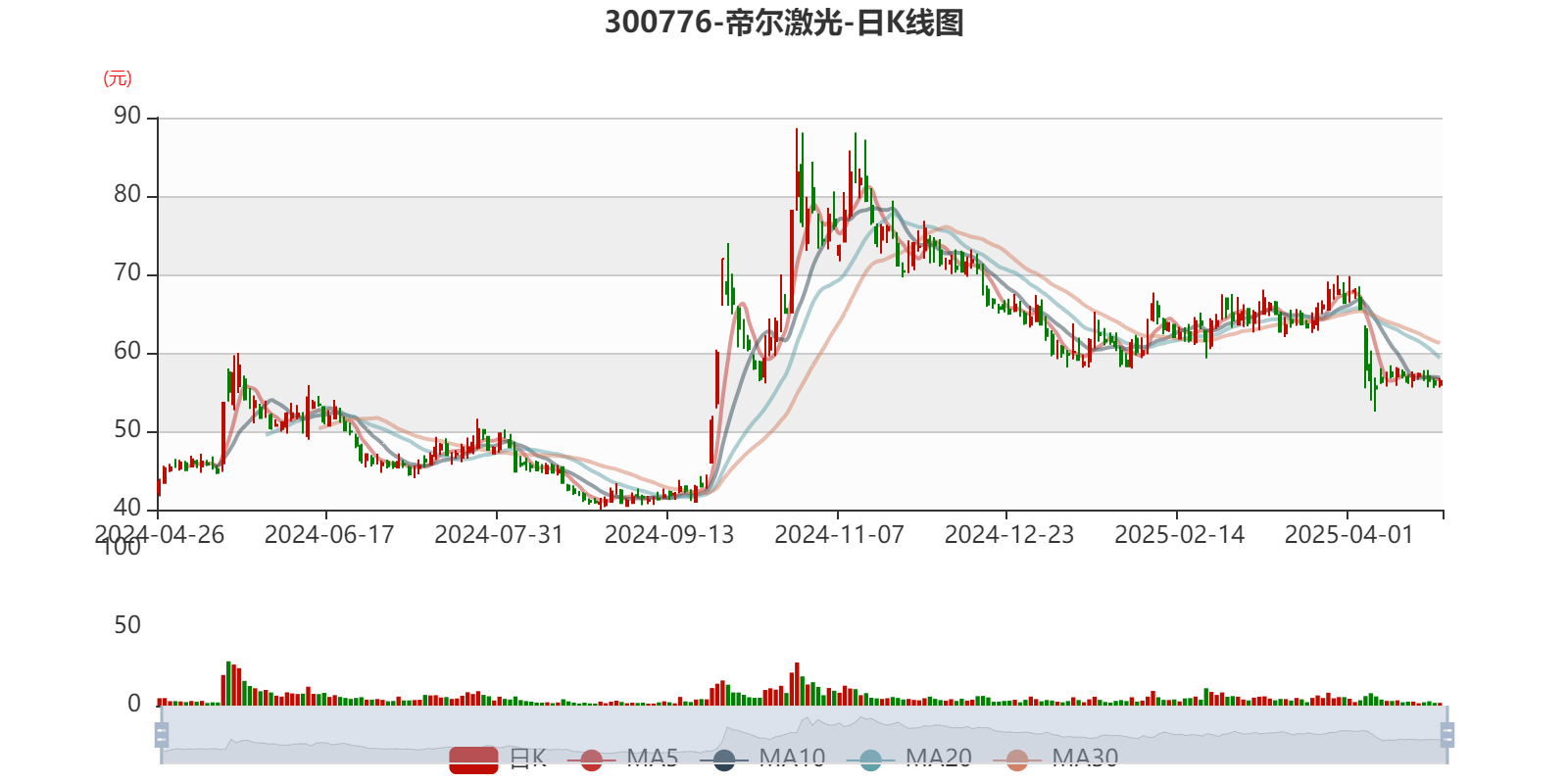 以4月25日收盘价计算,帝尔激光目前市盈率(TTM)约为27.78倍,市净率(LF)约4.23倍,市销率(TTM)约7.26倍。