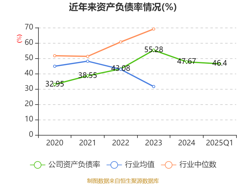 盈利能力方面, 2025年一季度公司加权平均净资产收益率为4.59%,同比上升0.29个百分点。公司2025年第一季度投入资本回报率为3.66%,较上年同期上升0.43个百分点。