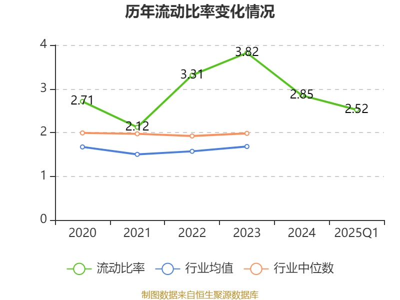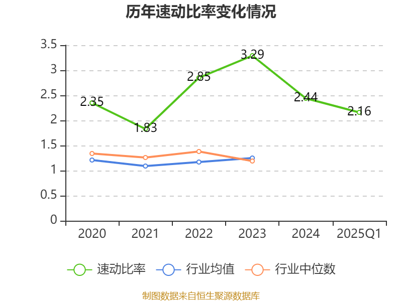 2025年第一季度,公司流动比率为2.52,速动比率为2.16。