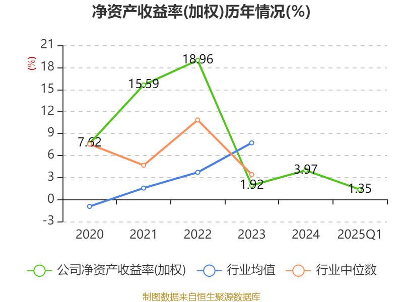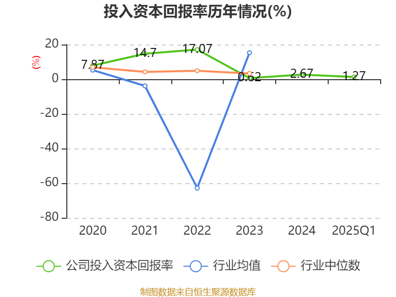 盈利能力方面, 2025年一季度公司加权平均净资产收益率为1.35%,同比上升0.87个百分点。公司2025年第一季度投入资本回报率为1.27%,较上年同期上升1.11个百分点。