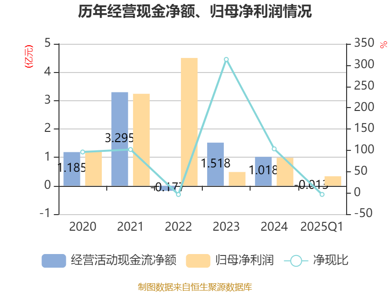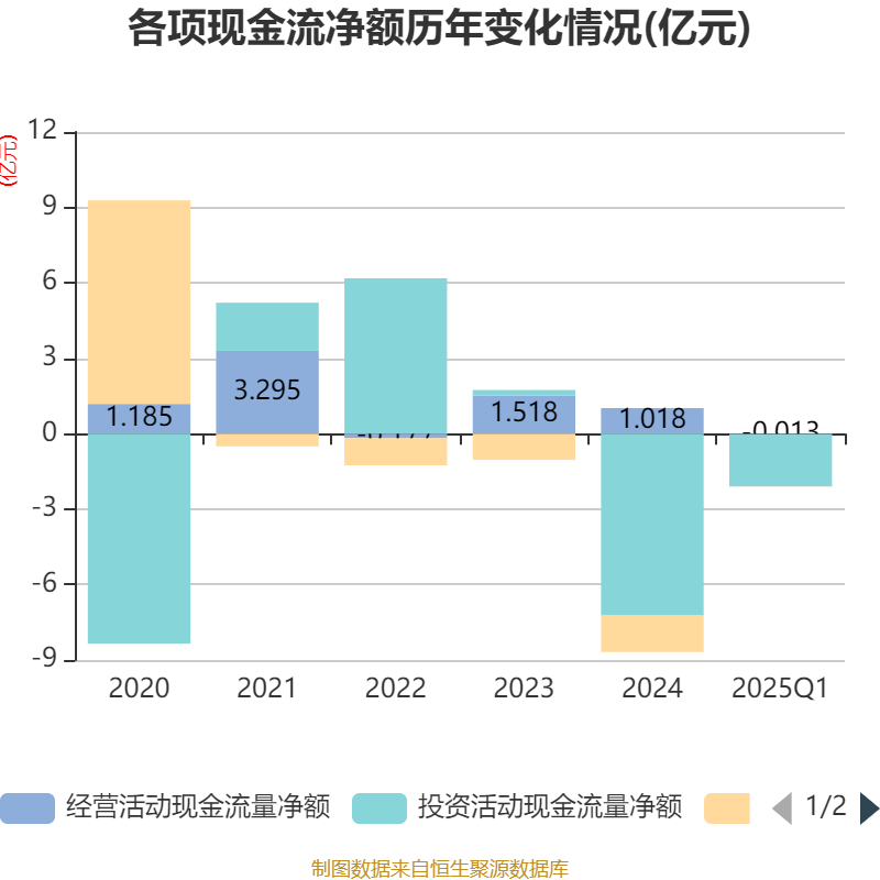 截至2025年一季度末,公司经营活动现金流净额为-125.76万元,同比增加339.71万元;筹资活动现金流净额-81.86万元,同比减少5.96万元;投资活动现金流净额-2.08亿元,上年同期为-938.36万元。