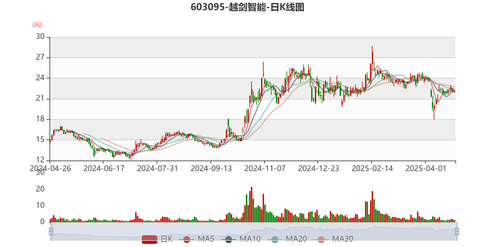 以4月25日收盘价计算,越剑智能目前市盈率(TTM)约为33.95倍,市净率(LF)约1.63倍,市销率(TTM)约2.93倍。